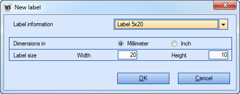 5. Click OK. The entered label dimensions are stored as label information under the name specified above.