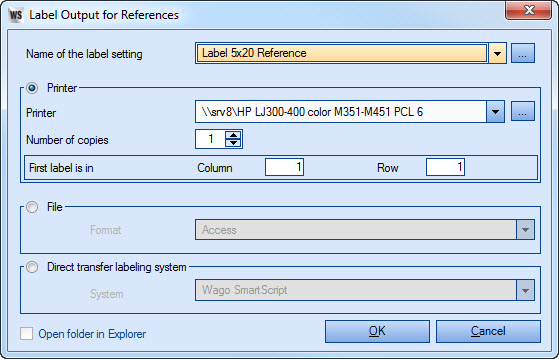 With the WSCAD SUITE, you can print inscription labels for references, cables, terminals, PLCs and measuring points on label printers from various manufacturers. You can either use predefined label settings or create your own according to your requirements. Alternatively, you can print to a file.