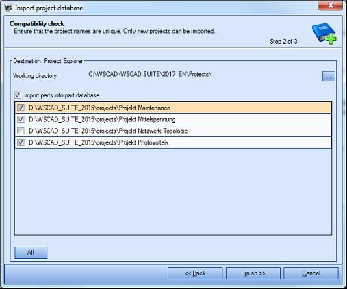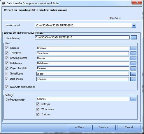Importing projects and data from previous versions into the new WSCAD SUITE 2017