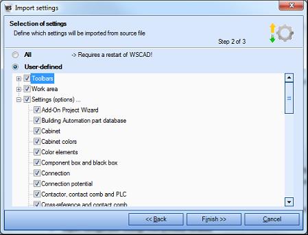 You can import the configuration settings from previous WSCAD versions (file format *.wsCFA).